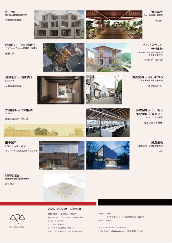 滝川寛明さん(2010年大学院造形研究科修士課程デザイン専攻建築コース修了)、原田将史さん(2002年建築学科卒業)が、「アーキテクツ・オブ・ザ・イヤー2025」にて入選されました。10月25日(土)より「アーキテクツ・オブ・ザ・イヤー2025」展が開催されます。